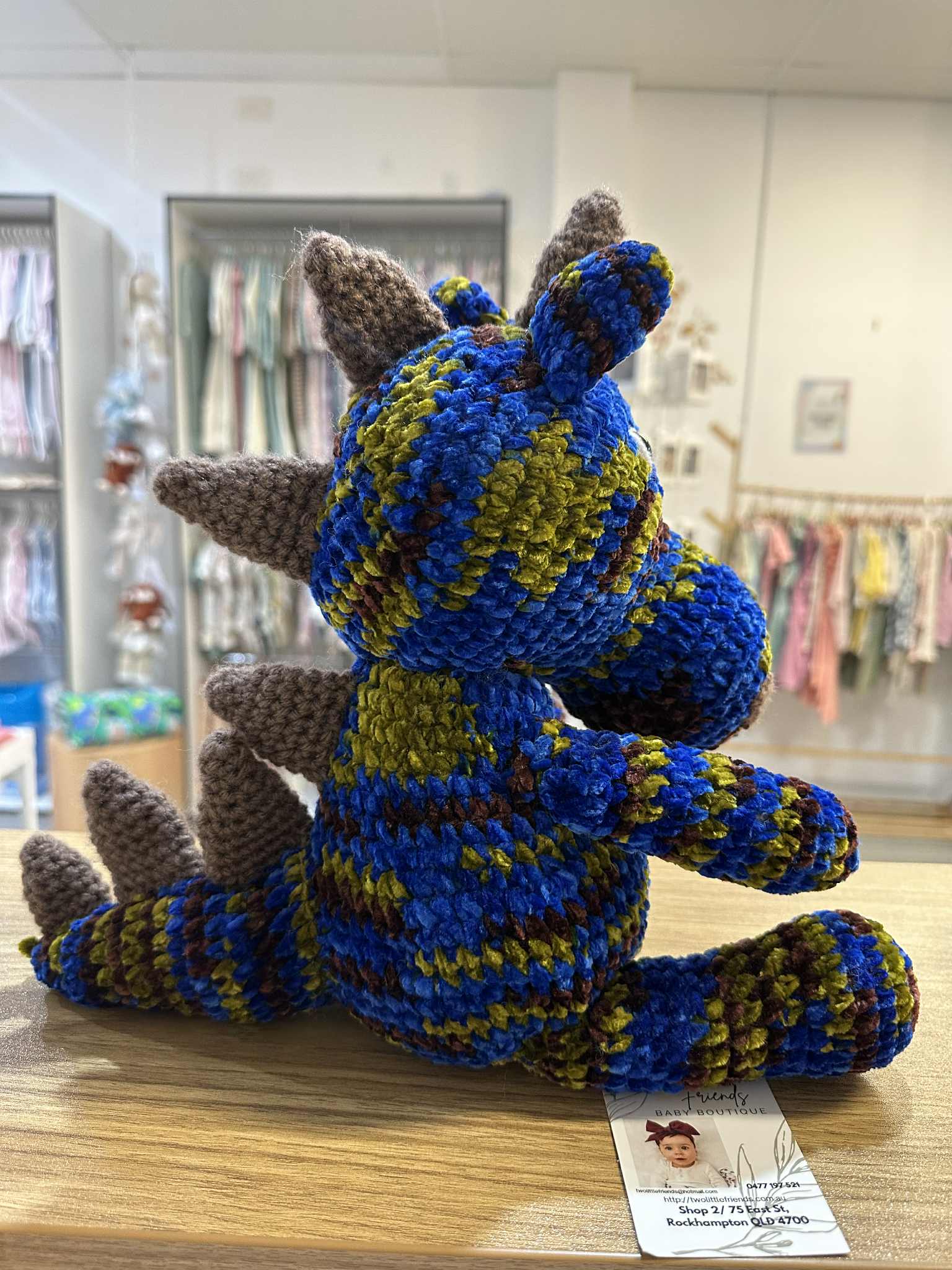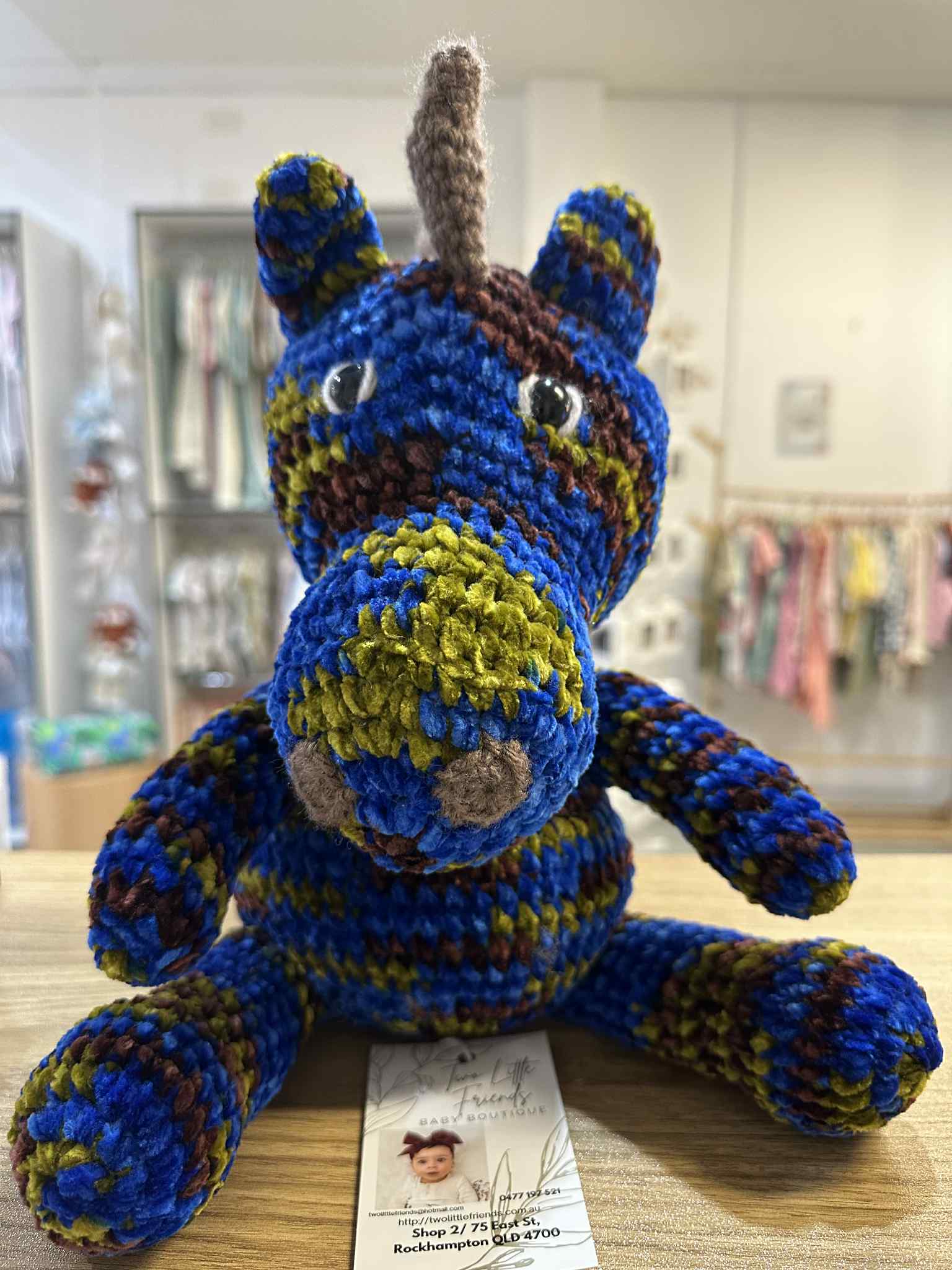 Meet Drake—the bold, multicolored guardian of cuddles and imagination. Hand-crocheted with vibrant yarns and fierce attention to detail, Drake the Dragon is a one-of-a-kind companion ready to soar into story-time, snuggle sessions, and magical adventures.