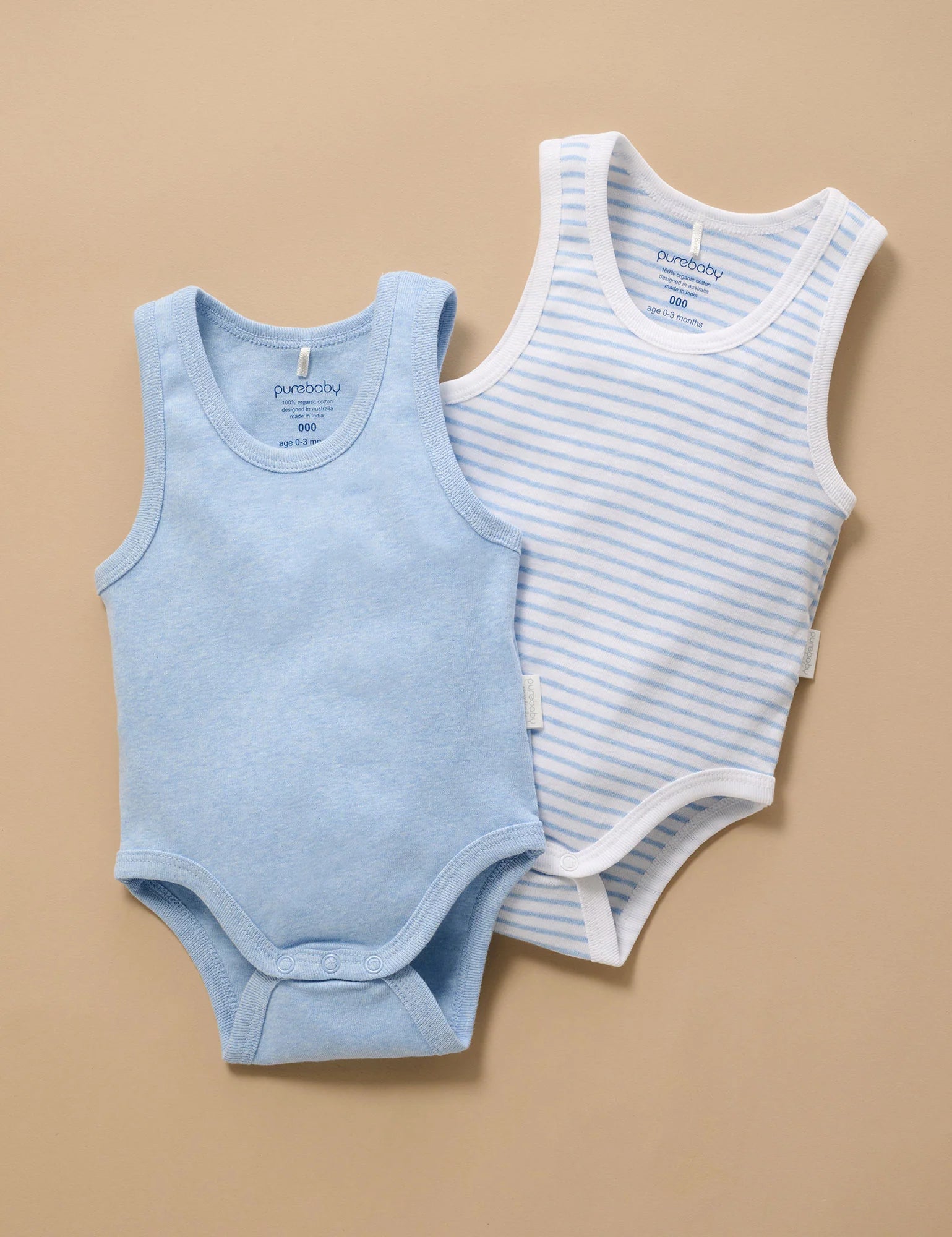 Our functional and practical 2 Pack Rib Bodysuit is a must-have for all year round layering. The all in one style ensures their torso stays covered and warm, while the snap clips at the nappy allow for easy dressing. Made from the softest 100% Organic Cotton making the bodysuit gentle and breathable on the skin. This essential style can be worn during all seasons as an individual piece or layered under cardigans and pants. 2 pack Self fabric bind on neck and armholes Snap clips at the nappy for easy dressing Made from 100% Organic Cotton
